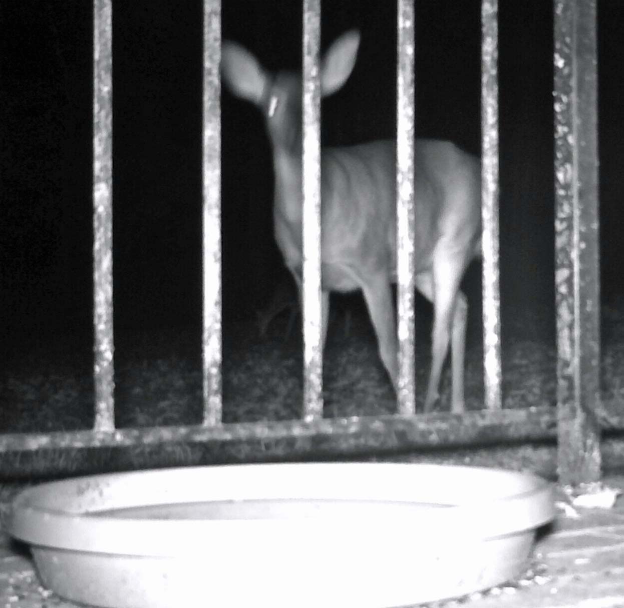 In April we saw an Owl hanging around the pond on multiple occasions. In the past couple of weeks we haven't seen any Goldfish so I suspected the Owl may have cleaned out the pond. Then a couple of nights ago, I got these two pictures. Both the Owl and a Raccoon were visiting the pond the same night. As such the lack of Goldfish might have been the result of several different predators. It is sad as we had a bunch of large Goldfish and we had a number of floating rocks to offer protection. Maybe some of the Goldfish are still hiding in the deep water.