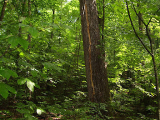 Yesterday afternoon we had a violent thunderstorm pass through the area. We were sitting in the dining room watching the downpour in the back yard when there was a sudden bright flash and immediate boom. It sounded like a cannon was just outside. After the storm we found a 100 foot tall Oak just behind the fence in the back yard had been hit by lightning. A line of bark was blown off the tree from top to bottom with some pieces landing 50 feet away. With luck the tree will survive but at least it has a slight tilt away from the fence so if it falls - hopefully it will follow that tilt.