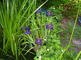 Once again our late blooming Azalea is putting on quite a show. This beautiful bush pushes branches on both sides of the fence and this year the deer have not eaten the outside part so it is blooming just as great as the inside. Meanwhile at the back of the yard another of our Clematis plants is cascading purple flowers for four feet.