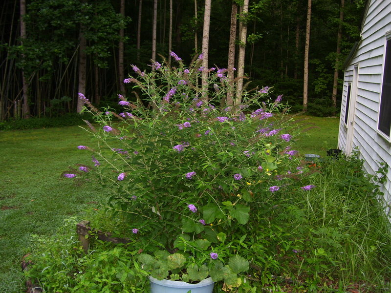 Sometimes Mother Nature knows best. The first picture is a Butterfly Bush that popped up in the garden behind the shed last year. As you can see it has grown beautifully this year with a great shape and lots of flowers for the Butterflies. The second picture shows the plants that popped up in one our potato pots after the potato harvest. It appears we have a squash and some kind of melon trying to get a start. Too bad it is so late in the season as I doubt they have time to produce any fruit.