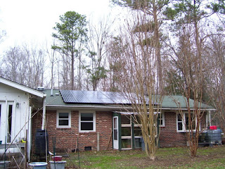 This past summer and fall one of our Crape Myrtle trees has grown tall enough to interfere with the sun on the solar panels so yesterday I cut it back. The last time I trimmed it I cut it to 10 to 12 feet; this time I cut it to 5 to 6 feet. It will be interesting to see what it looks like in the spring since I probably violated the rules for proper pruning. In fact on the radio garden show this morning, a caller asked about pruning his Crape Myrtle and the host said to wait for the spring. Oh well too late for me.